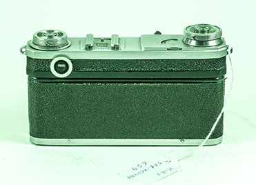 Kiev is the name of a city in Russia, and this camera was actually produced with the machinery, and tooling Russians took away from Zeiss Ikon in east Berlin after WWII, and shipped to Kiev by trains. The real advantage of making the curtains like a steel watch band, in Kiev, and contax, is the curtains could interlock during the cocking cycle, and you can’t do that with thin cloth focal plane shutters. The first curtain hook, and latch lever (see below) work together to lock the first curtain in place before shutter release. When the release button is pressed in, the latch lever disengages to release the first curtain.