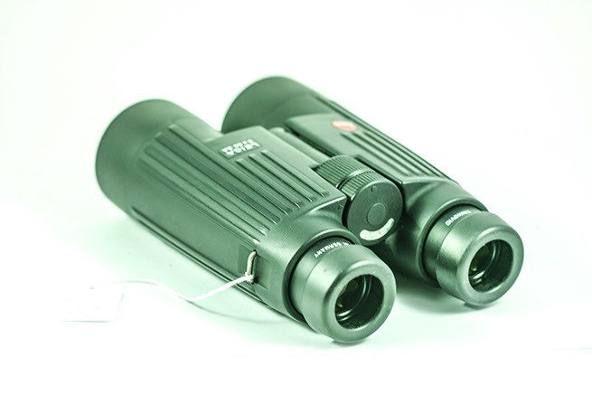 This is a rubberized design to make the binocular more resistant to bumps, more suitable for hunting. Usually these are hung on one's neck, and during, climbing their body may hit a rock, and get dented. This makes so much sense because specially the front barrel is so vulnerable to be dented. This binocular is also and example of waterproof design, down to 5 meters deep, and Leica guarantees them for 30 years. Note how the 50 mm objectives are fit so tight in this design, and it's probably the largest objectives the roof prism scheme allows to be implemented. The optics provides a wide-field image with a 14.5 mm eye relief. Total weight is 1,150 kg.