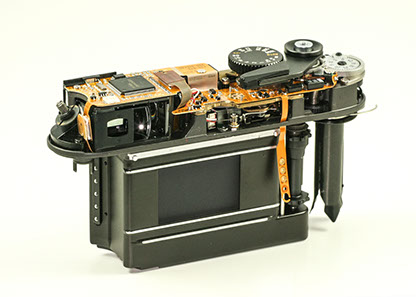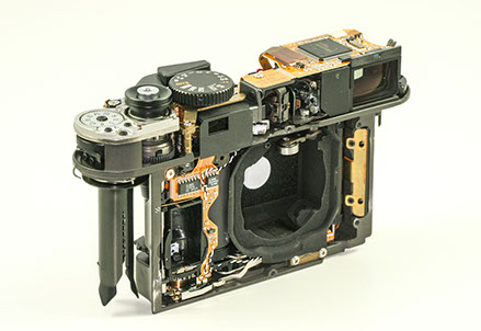 Leica began its electronics venture by installing a light meter inside their M5. M5 body size increased on its left side to house the analog circuitry, and its technology looked like a Siemens telephone of its time. CL was more intricate, joint designed with the Japanese. M6 incorporated flex circuits for its built-in center weighted metering system, reading the light off of a white circle on its first curtain. M7 electronics controlled both the metering system, and the shutter speed, and this portion of the circuitry, and the LED display inside the viewfinder looks exactly like M8. M8, and M9 look the same except the M9 is a full frame camera, and they both use sensors built by a company inside Germany, also making sensors for the S system.